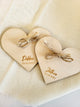 In de hartjes zit een gaatje en wordt geleverd met bruin jute touw zodat je de ringen hier aan kan binden.