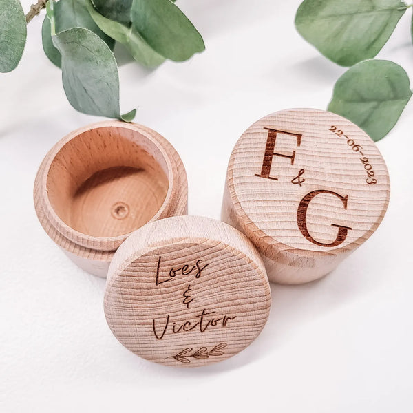 Klein rond ringendoosje - gegraveerd