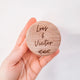 Rond houten ringendoosje met los schroef dekseltje. De bovenkant wordt gegraveerd met een van de designs.